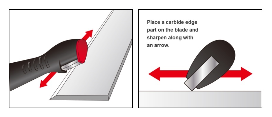 - За заточване на остриета: поставете волфрам-карбидния ръб на точилото към острието, което се нуждае от заточване. Плъзнете точилото напред-назад по дължината на острието.