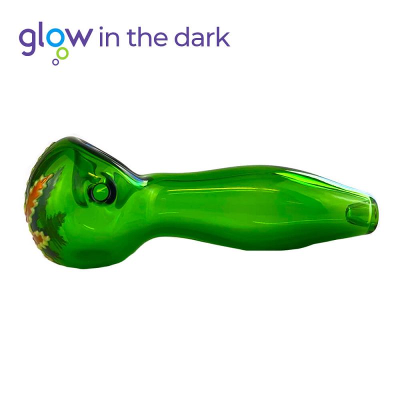 This 10cm long glass pipe is an ideal choice for those who love discreet and functional accessories. Featuring a classic leaf print, it not only looks stylish, but also glows in the dark , making it easy to find and use in low light .
