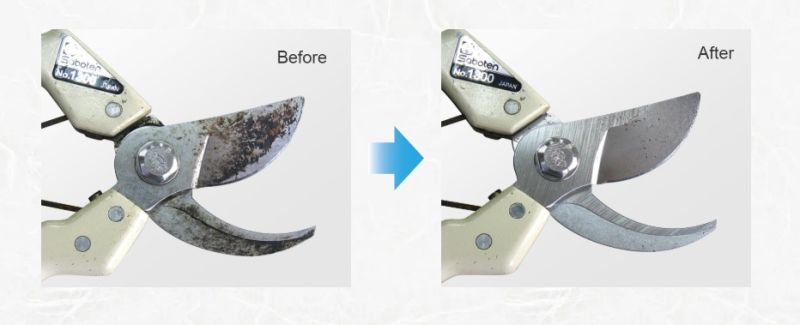 - Exceptional sterilizing effect . Powerful cleaner that quickly penetrates and removes tree sap (resin/tannin) from garden cutting tools (scissors, blades, etc.).