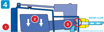 This vacuum traps water inside the ‘main body’ and in turn keeps the ‘inner float’ up and the incoming water shut off (3).