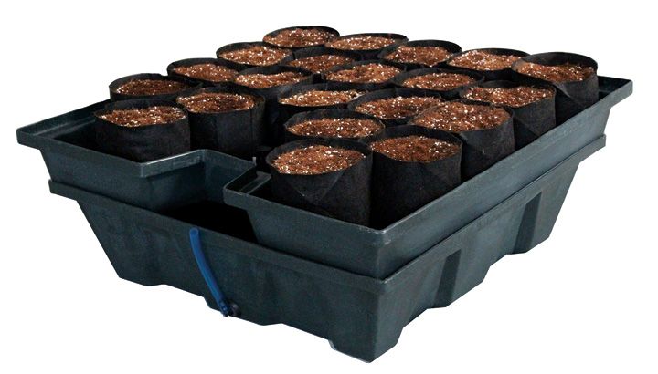 The system can be used with plastic pots (as a cheaper option) or textile pots , which are a little more expensive, but allow uniform watering of the substrate.