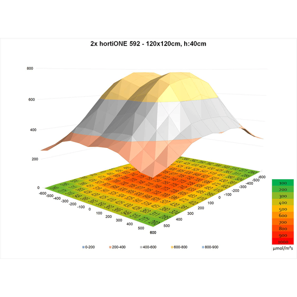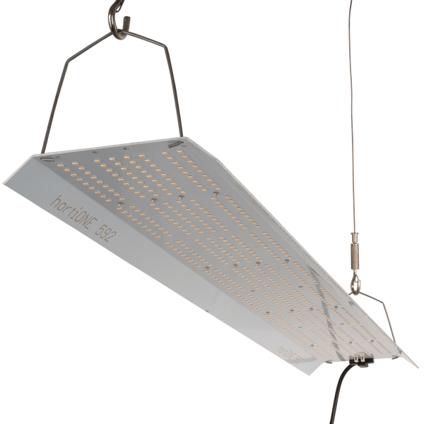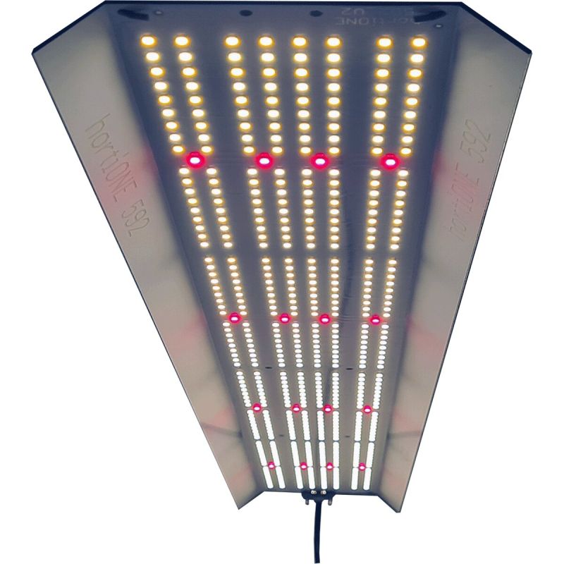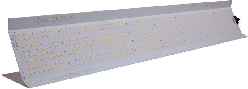 hortiOne 592 V2 LED lighting for indoor cultivation is one of the best products on the market when it comes to value for money! The product has 592 diodes producing full spectrum light, making it suitable for use during both the growing and flowering phases of plant development. hortiOne 592 V2 offers high quality emitted light at an affordable price! Low levels of generated heat (does not require cooling) and no active heat radiation in direction of the plants. When growing indoors, 2 x hortiOne 592 V2 with a total consumption of only 380W can replace a 600W HPS bulb (based on PPF)!
