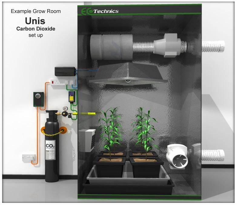 This complete CO2 controller and regulation system is one of the best on the market; it consists of the Evolution carbon dioxide controller, the Evolution N.D.I.R. CO2 controller with an Ecotechnics CO2 Regulator. The new Evolution Controller is the most advanced of its kind and has more features and functionality than any other product on the market. The controller utilises the latest microprocessor and infrared technology to monitor and control the levels of carbon dioxide in your growing area. The controller can operate with or without the CO2 sensor and can be used either with bottled CO2 gas or with a gas burning CO2 generator. In addition to this the controller can be interfaced to most external thermo/hygrostats for improved environmental control for rooms from 1 m3 to 999m3. To complete the kit we have the Ecotechnics regulator which is manufactured in the UK from top quality components. It has a fixed flow rate of 0.17ltrs per min and is Ecotechnics standard horticultural regulator. The Unis Co2 controller is design for fast and simple set up and ease of use. For 10 Years the Unis controller has provided growers with a cheap simple and very reliable means of enhancing co2 levels. The Ecotechnics Unis Co2 controller has been specifically designed to allow easy co2 enrichment for home growroom and glass house horticulture, our Unique approach to Gas regulator design makes this the simplest system to set up in the world. Just calculate the volume of your growing area in cubic meters and dial it into the Unis controller. Its that simple. No more complex calculations about gas flow rate, pressure, on period / off period timing, just one setting. The latest version of the Unis co2 controller is microprocessor based and has 16 settings from 1 Cubic Meter to 100 Cubic Meters. In use the Unis controller is very simple and Will provide years of trouble free use.