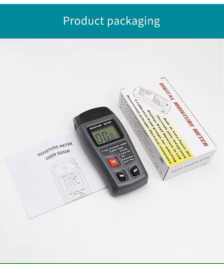 - Suitable for measuring the moisture content of wood, cardboard and dry materials.