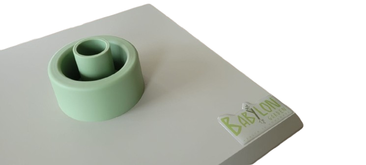 Babylon Garden is an innovative modular hydroponic system for growing micro plants . It consists of 4 trays , mounted vertically with a total height of 34 cm . Each of them consists of: Ishtar tray, grid, lid with non-stick coating, vertical support tube, MDF support. The Babylon Garden set includes as a gift :