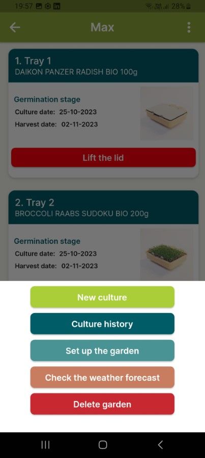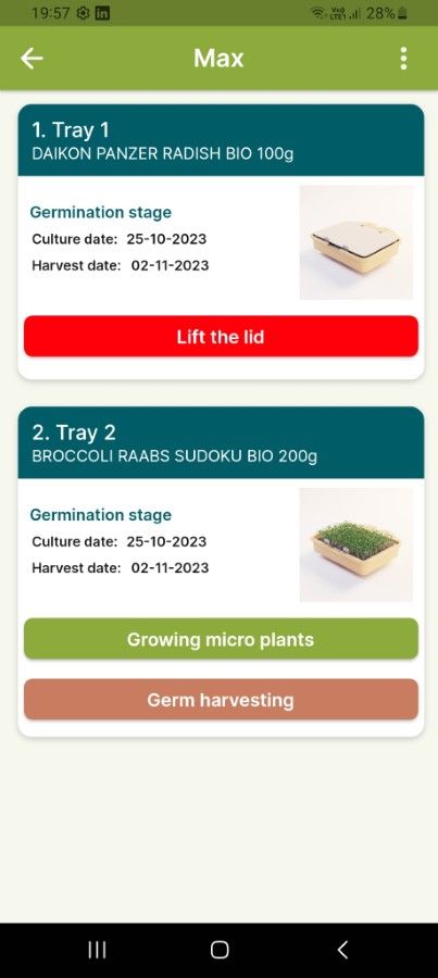 - The system is designed so that you pour water once. If you leave the seeds to grow for a longer period than recommended in the application, then you should fill the container with water up to 400 ml .