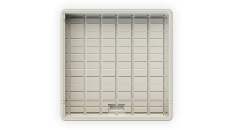 Уникалният дизайн на отводнителните канали се произвежда по такъв начин, че граничният ефект със суха култура от двете страни на тавата (причинена от високо изпаряване) е сведен до минимум, чрез осигуряване на 2 mm по-високо ниво на водата и по-дълго време за поливане на растенията по краищата.