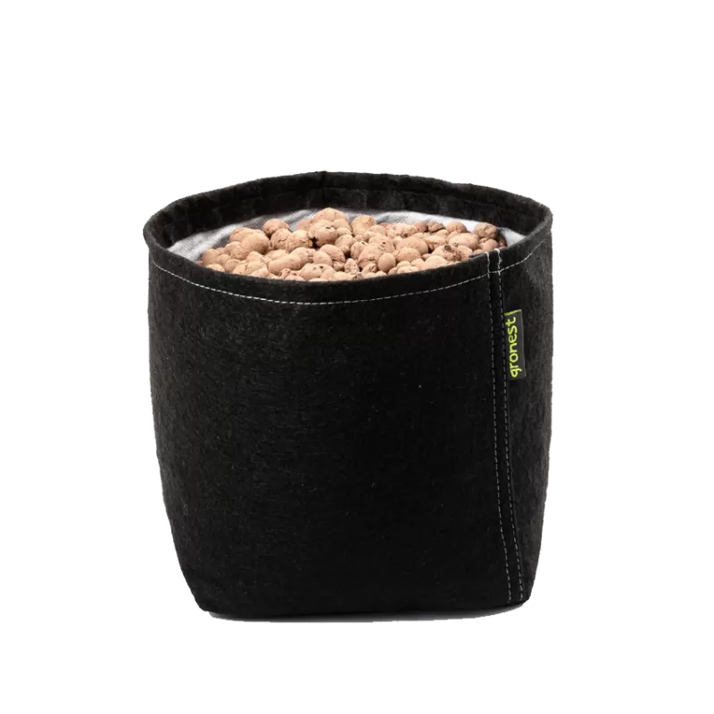 Gronest Fabric Pot 11л. e текстилна саксия, подходяща за отглеждане на открито и закрито, както от любители, така и от професионалисти. Gronest са разработили технически напредналия съд за отглеждане, чрез патентования от тях "Aqua Breathe" - слой. С високотехнологичния геотекстил на Gronest е постигната оптимална здравина, аерация и задържане на влагата в дадения продукт.