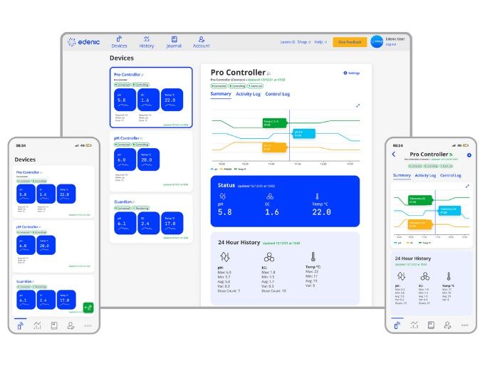 24/7 контрол на pH, EC и темппературата на хранителния разтвор във вашия резервоар, навсякъде, по всяко време от вашия смартфон!