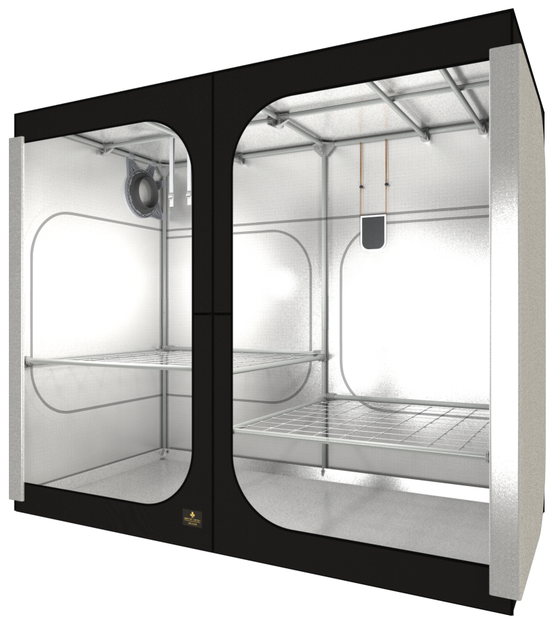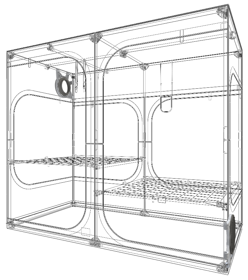 Secret Jardin DR240W е палатка от елитната серия Dark Room, предназначена за отглеждане на растения на закрито с височина до 150см. Палатката се предлага с два DF25 фланеца за свързване с въздуховод към входящ и изходящ вентилатор, и всички необходими аксесоари за инсталиране на една завършена вентилационна система.