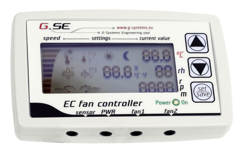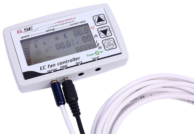 С този контролер лесно настройвате параметрите и преглеждате подадената от вентилатора информация - като настроена скорост, температура, влажност (всичките изброени - за ден и нощ), подналягане и обороти на изходящия вентилатор. Вграден сензор отчита осветеността и превключва между дневен и нощен режим.