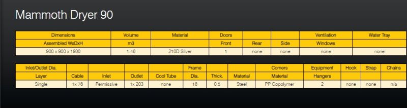 Mammoth Dryer 90 е палатка специално предназначена за сушене на растения. С нея можете напълно да контролирате процеса на сушене и количеството на влагата.