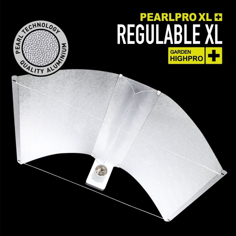 Garden Highpro PEARLPRO XL е регулируем* рефлектор от отворен тип, направен от висококачествен "перлен" алуминий. PEARLPRO XL не създава т.нар. "горещи точки" и разпределя светлината по-хомогенно от останалите рефлектори в този ценови клас. Благодарение на по-голямото разпределение и интензитет на светлина, рефлекторът има по-голяма покривна площ. Към рефлекторът са включени 3 различни спредера за разпръскване на светлината, които позволяват оптимизиране на светлината, според помещението, в което е разположен.