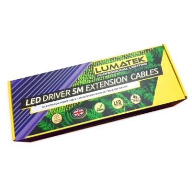 LUMATEK LED Driver Remote Use 5m Extension Cables (x2) са два удължителни кабела, предназначени за свързване на LUMATEK драйвер с LUMATEK осветителното LED тяло, в случай че драйверът се използва дистанционно и далеч от осветителното тяло. Позволявайки стабилна и прецизна връзка без никакви смущения, този продукт се състои от 2 елемента: