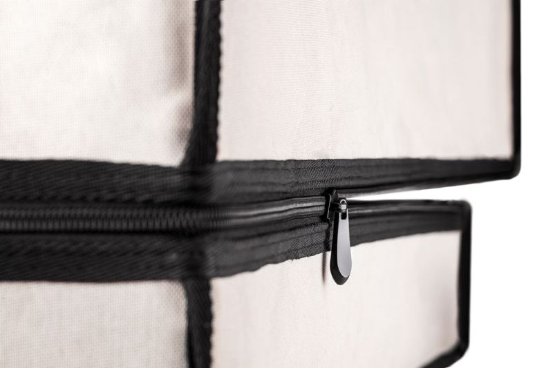 - Напълно светлонепропусклива: Total-Blackout циповете, освен че осигуряват допълнителна здравина, затварят напълно, като не пропускат никаква светлина, без нужда от допълнителни капаци и велкро-лепенки. Материал от здраво платнище с вътрешен слой от дебел и гъвкав полиетилен.
