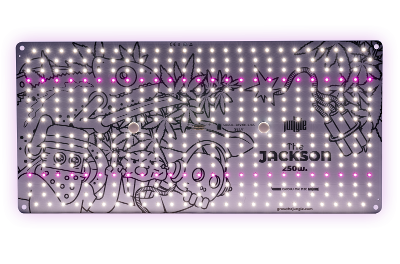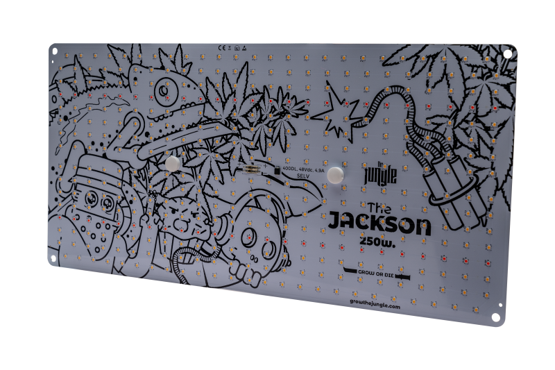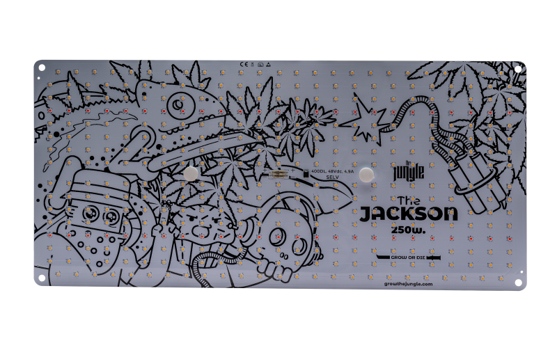 Jungle LED The Jackson 250W е високоефективно диодно / LED осветление за отглеждане на растения на закрито. Предназначен за професионални градинари, които търсят най-високите добиви, когато мощността не е проблем! Използвайки 2 x Jackson 250W на 1м2, получавате по-висока производителност от 1 x 1000W HPS крушка!