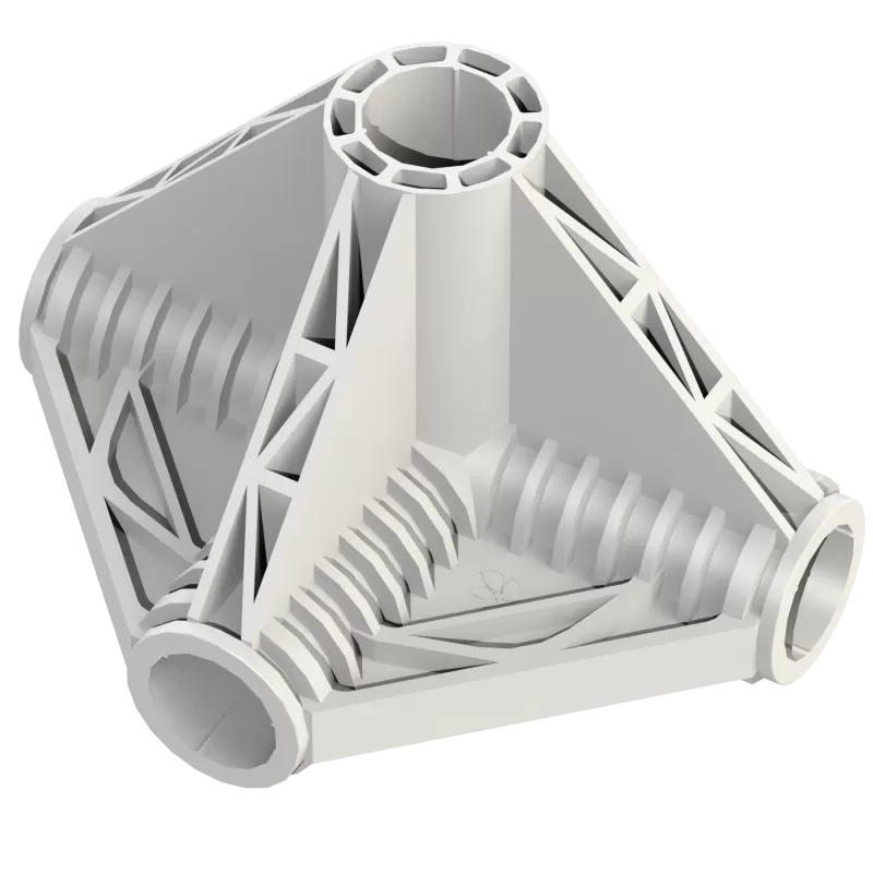 Ъгъл ⌀ 19мм - 4 оси K-образен е резервен пластмасов конектор за звързване на стоманените профили на палатките Secret Jardin. Подходящ за моделите: DS120, DS150W, HS120, HS150, HS240W, HS300W.
