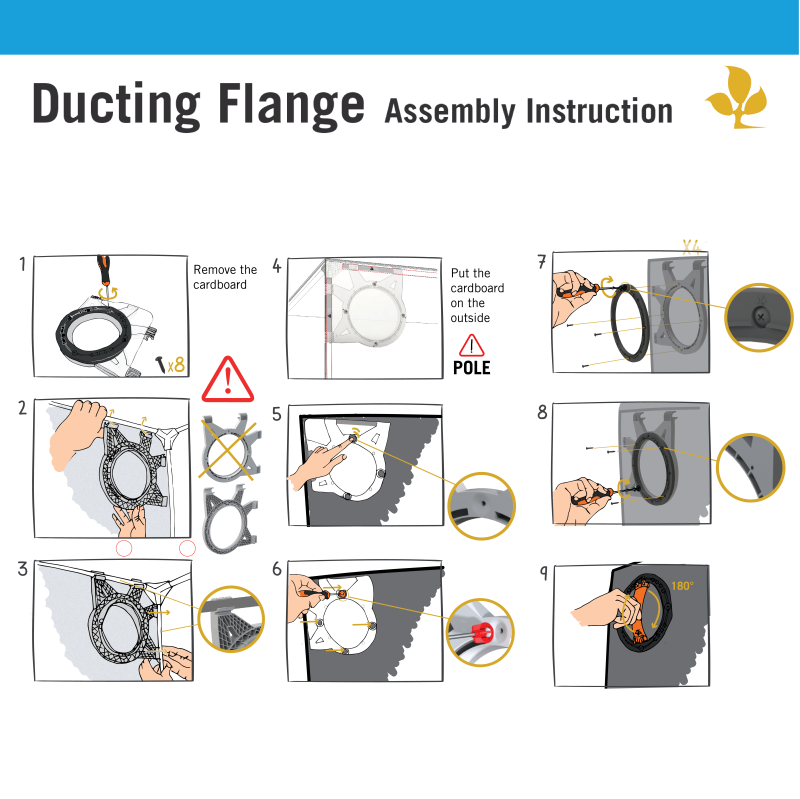 Комплект фланец за въздуховод за ⌀ 25мм профили Secret Jardin DF25 идва на помощ, когато искате да направите допълнителен въздухоотводен отвор във вашата палатка. Комплектът съдържа: поставка за DF25, отвертка, винтчета, режещ инструмент.