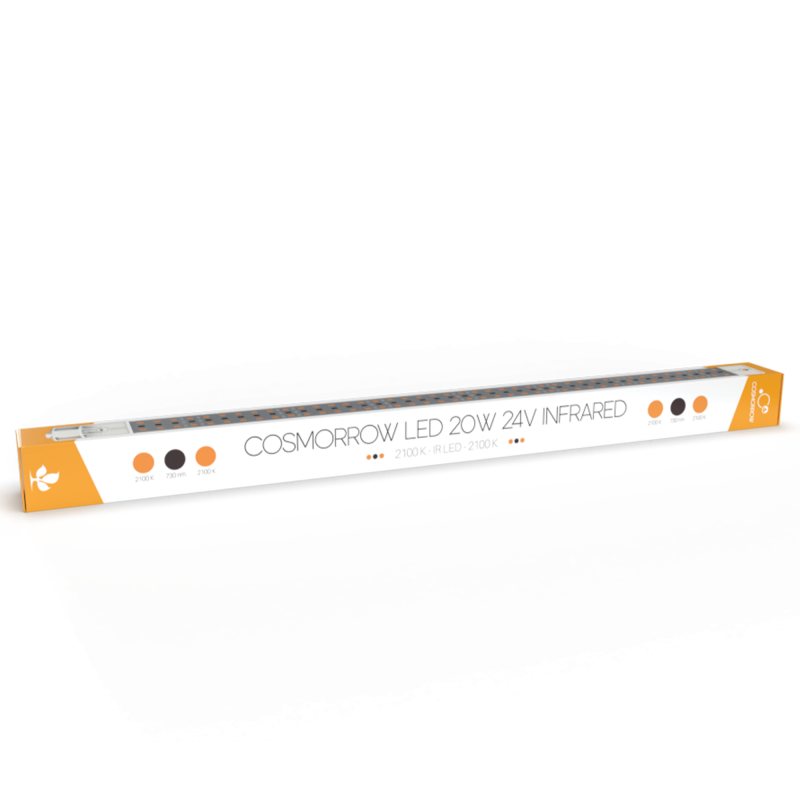 Secret Jardin Cosmorrow LED 20W 24V L50cm IR е единична LED лента с излъчване в инфрачервения спектър. Идеална за допълнително вертикално осветление за растенията във вашата палатка. Захранването не е включено в комплекта - продава се отделно! Него може да закупите от тук!