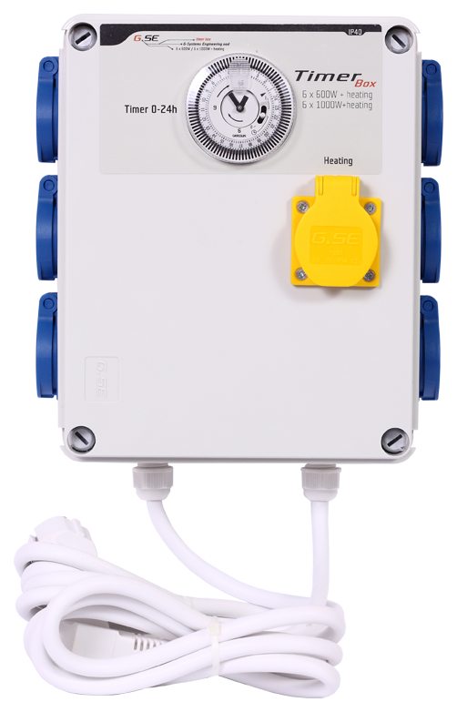 G-Systems Timer Box 6x600W + Heating - Таймер Кутия с 6 контакта за лампи + 1 за Oтоплениe, с 2 кръга