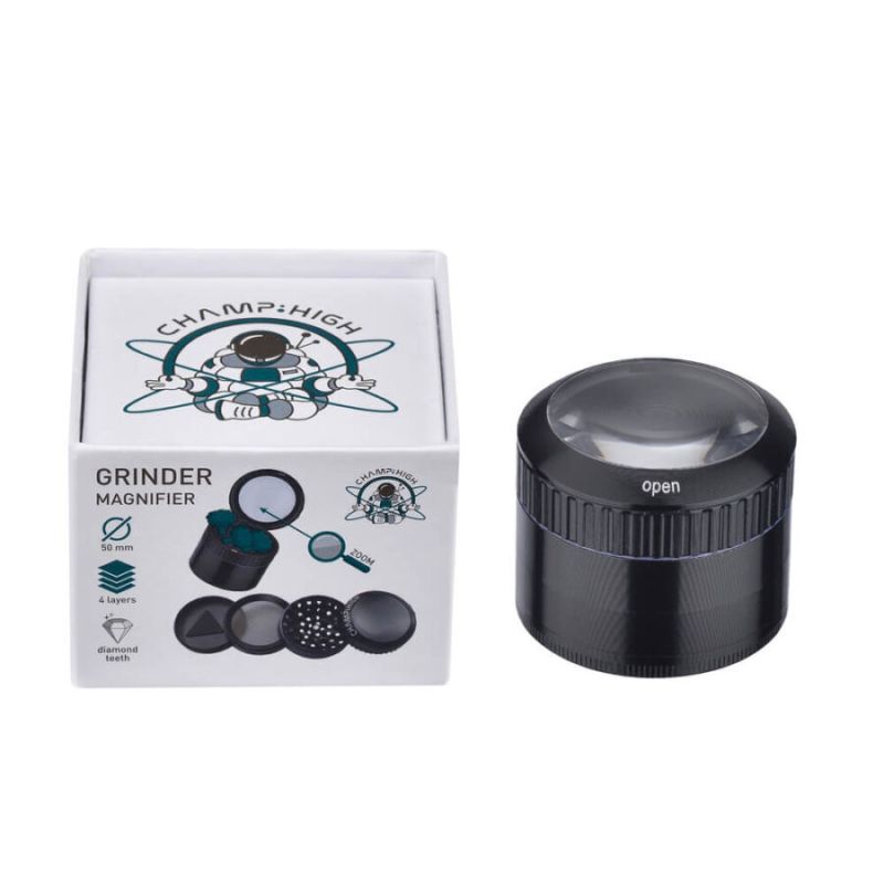 Champ High ⌀ 50мм - Метален Гриндер с лупа от 4 части (черен)