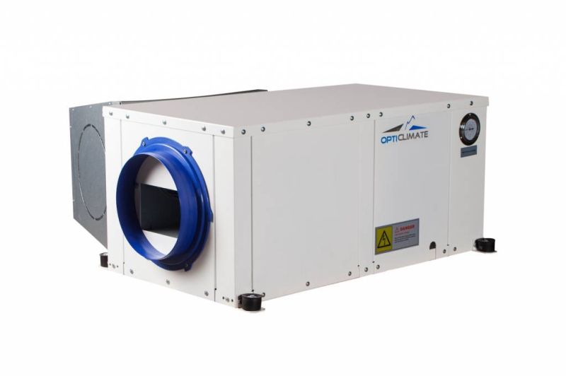 • OptiClimate изсушава, като непрекъснато намира правилния баланс между отопление и охлаждане. Това позволява на функцията за обезвлажняване да работи дори след достигане на желаната температура. Капацитетът на обезвлажняване на OptiClimate е повече от достатъчен за повечето приложения. Това е един и половина до два пъти по-ефективно от строителен изсушител.