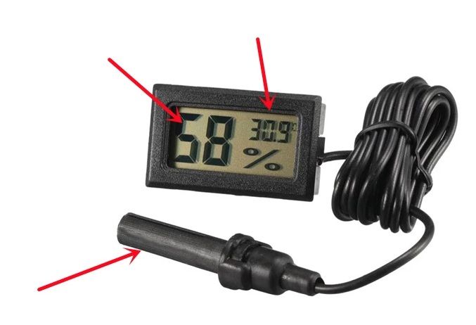 Този висококачествен термо-хигрометър е идеален инструмент за точно отмерване на влажността и температурата в различни среди. Оборудван с дълга 1.3 метра сонда, устройството осигурява гъвкавост и удобство при измерванията, позволявайки достъп до труднодостъпни места. Подходящ е за използване в дома, лаборатории, оранжерии и други среди, където контролът на влажността и температурата е критичен. Забележка: (Не съдържа батерия) 1. 100% високо качество 2. Тип: Електронен хигрометър 3. Материал: ABS 4. Размер: 48 x 28,6 x 15,2 мм 5. Цвят: черен/бял 6. Измерване на влажността: 10%RH-99%RH 7. Точност на влажността: ±5% 8. Разделителна способност на дисплея за влажност: 1% RH 9. Температурен диапазон на измерване: -50 ~ +70 (градуса по Целзий)10. Точност на температурата: ± 1 11. Разделителна способност на температурния дисплей: 0.1-0.5 . 12. Напрежение: 2 * 1,5V бутонни батерии LR44 (не са включени)
