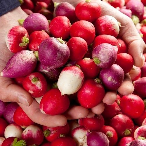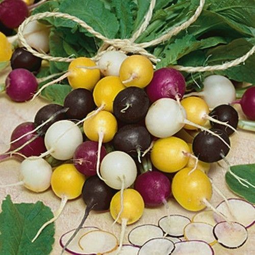 Този весел микс включва кръгли сортове репички в разнообразни цветове: червено, бяло, червено-бяло и… жълто! Летните репички са с по-остър вкус, което ги прави чудесен избор за салати и гарнитури.