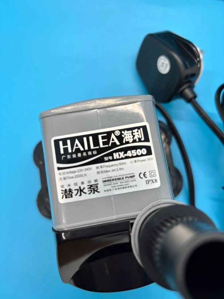 Компактна и ефективна потопяема помпа Hailea HX-4500 с дебит до 2 000 л/ч и напор до 2,8 м — подходяща за езера, фонтани, системи за хранене и циркулация. Включва смесител за аериране на разтвора създадена за продължителна употреба работи добре с ниско ниво на водата в резервоара вграден регулатор на дебита приложима е за NFT и Flood-and-Drain вендузи за сигурно закрепяне в резервоара