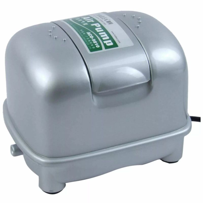 Надеждна и тиха въздушна помпа Hailea ACO-9820 с производителност до 60 L/min (3 600 L/h), 10 изхода и шумоизолирана конструкция — за ефективно аериране на аквариуми, езера и хидропонични системи.