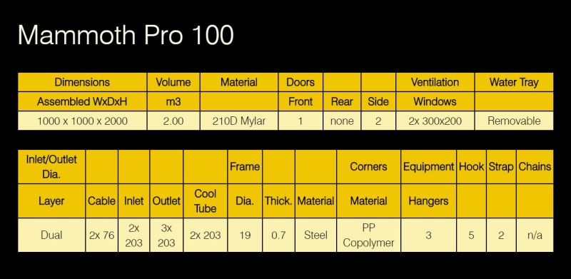 Mammoth Pro+ 100 - Палатка за отглеждане на растения (1000 x 1000 x 2000мм)