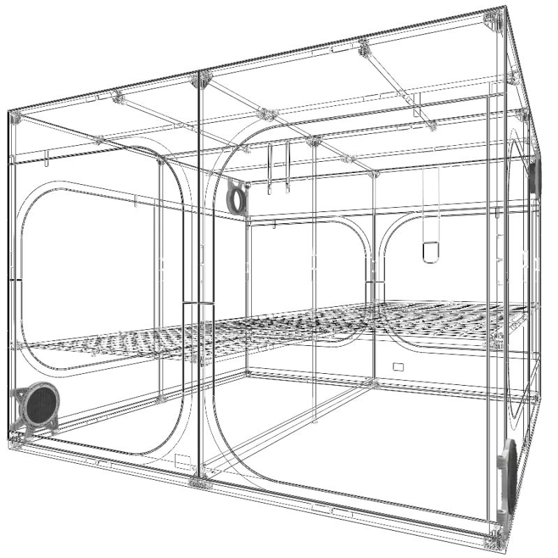 Secret Jardin DR300 е палатка от елитната серия Dark Room, предназначена за отглеждане на растения на закрито с височина до 180см. Палатката се предлага с два DF25 фланеца за свързване с въздуховод към входящ и изходящ вентилатор, и всички необходими аксесоари за инсталиране на една завършена вентилационна система.